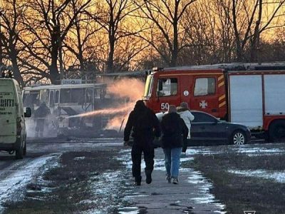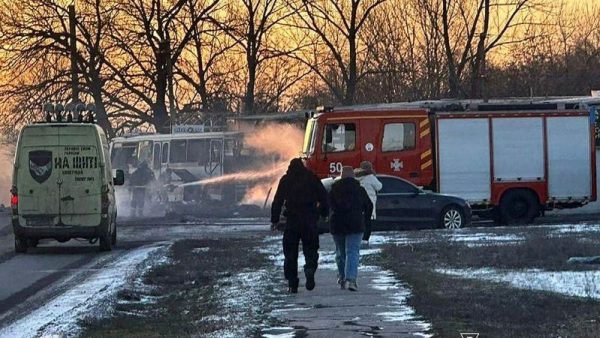 A Russian drone strike hit a bus carrying miners in Ukraine’s Dnipropetrovsk region on Sunday, ...